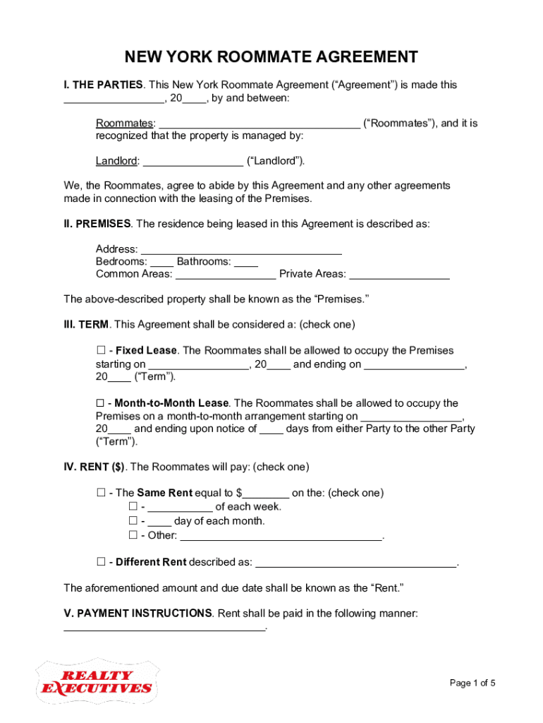 Get the free new-york-roommate-lease-agreement- ...