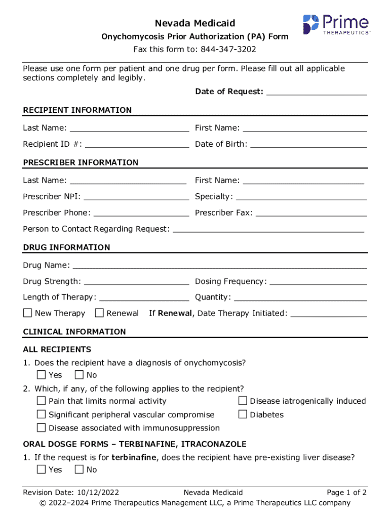Get the free Nevada Onychomycosis PA Form. Nevada Onychomycosis PA Form