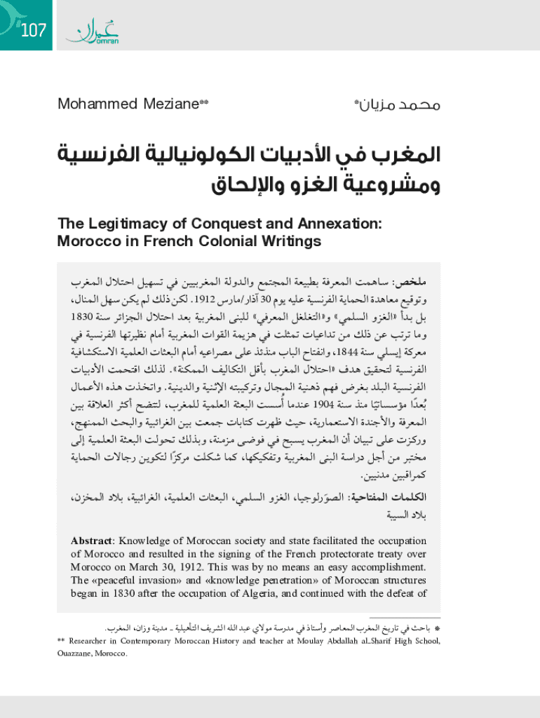 107* **Mohammed Meziane The Legitimacy of Conquest and Annexation: Morocco in French Colonial Writings :