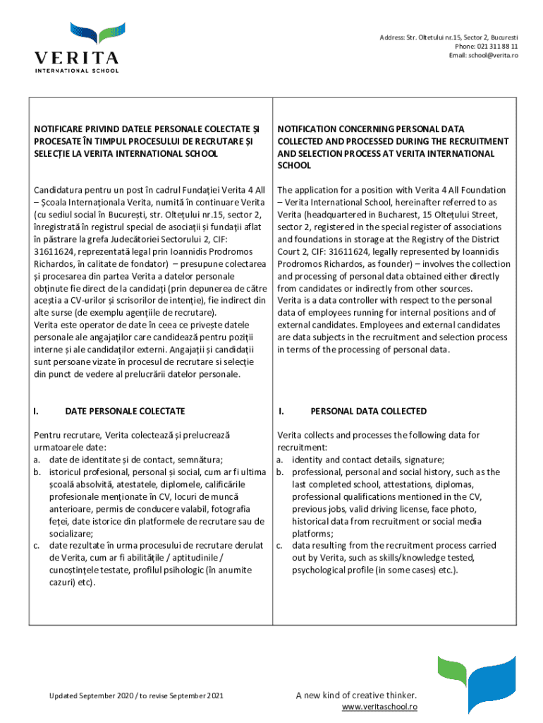 Email: school@verita.roNOTIFICARE DRIVING DATE LE PERSONAL COLETTE I