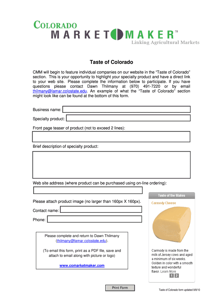 Get, Create, Make and Sign taste of colorado form