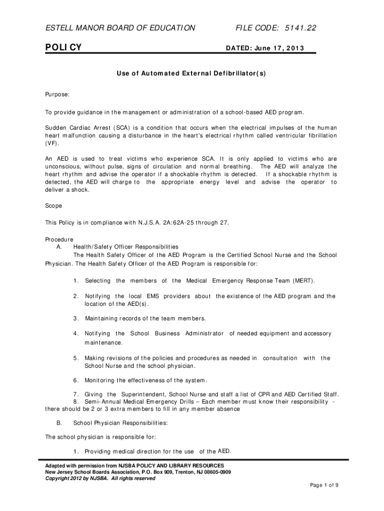 Get the free No. 164 Automated External Defibrillator Administrative ...