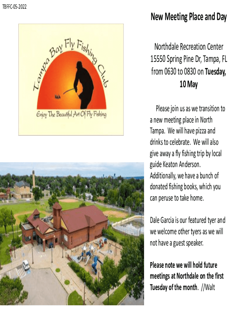 TBFFC052022New Meeting Place and Day Northdale Recreation Center 15550 Spring Pine Dr, Tampa, FL from 0630 to 0830 on Tuesday, 10 May Please join us as we transition to a new meeting place in North