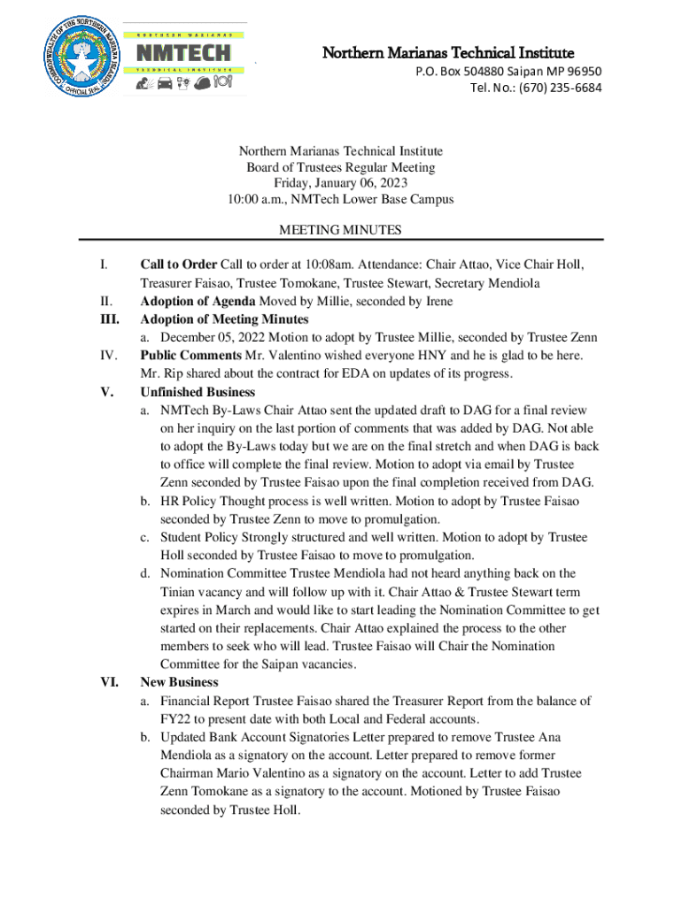 Tel. No.: (670) 2356684Northern Marianas Technical Institute