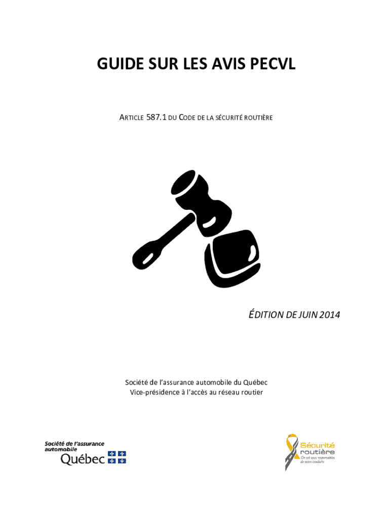 GUIDE SUR LES AVIS PECVL ARTICLE 587.1 DU CODE DE LA SCURIT ROUTIREDITION DE JUIN 2014Socit de lassurance automobile du Qubec Viceprsidence laccs au rseau routierTABLE DES MATIRES1 Introduction22