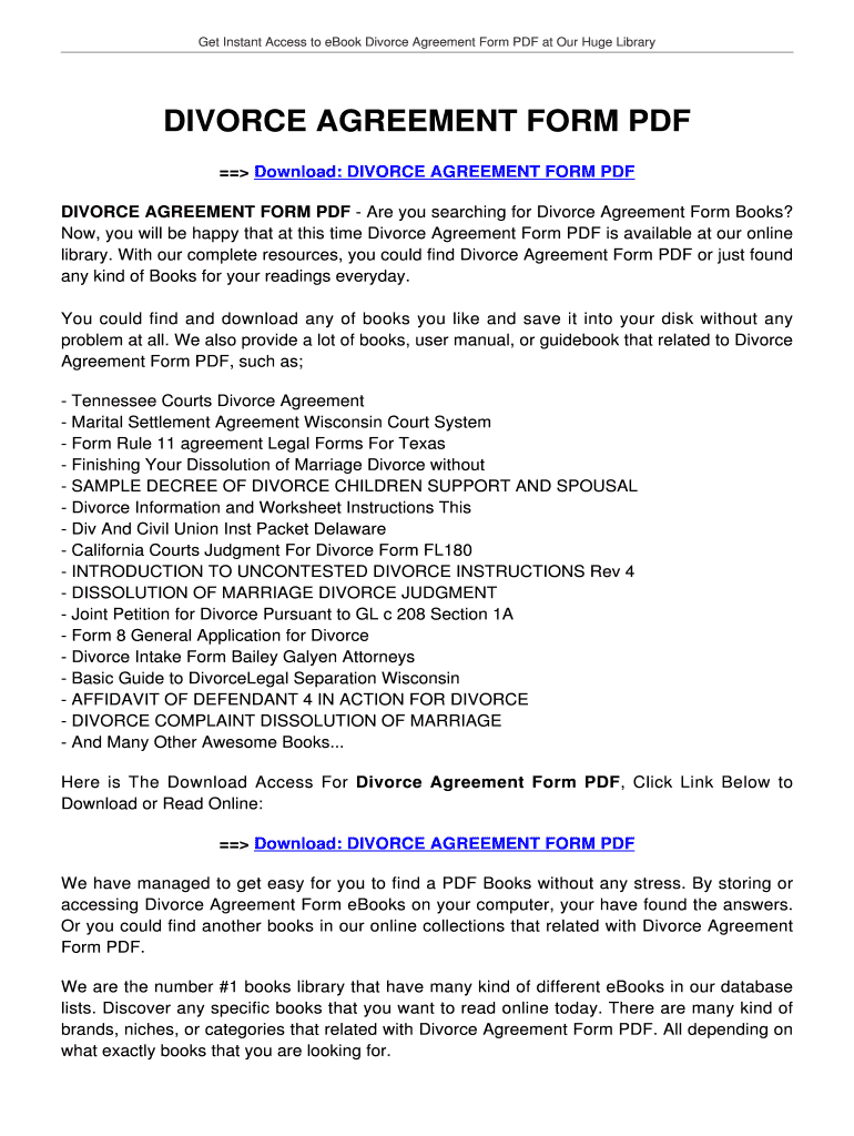 Get Instant Access to e-book Divorce Agreement Form PDF at Our Huge Library DIVORCE AGREEMENT FORM PDF Download: DIVORCE AGREEMENT FORM PDF DIVORCE AGREEMENT FORM PDF Are you searching for Divorce