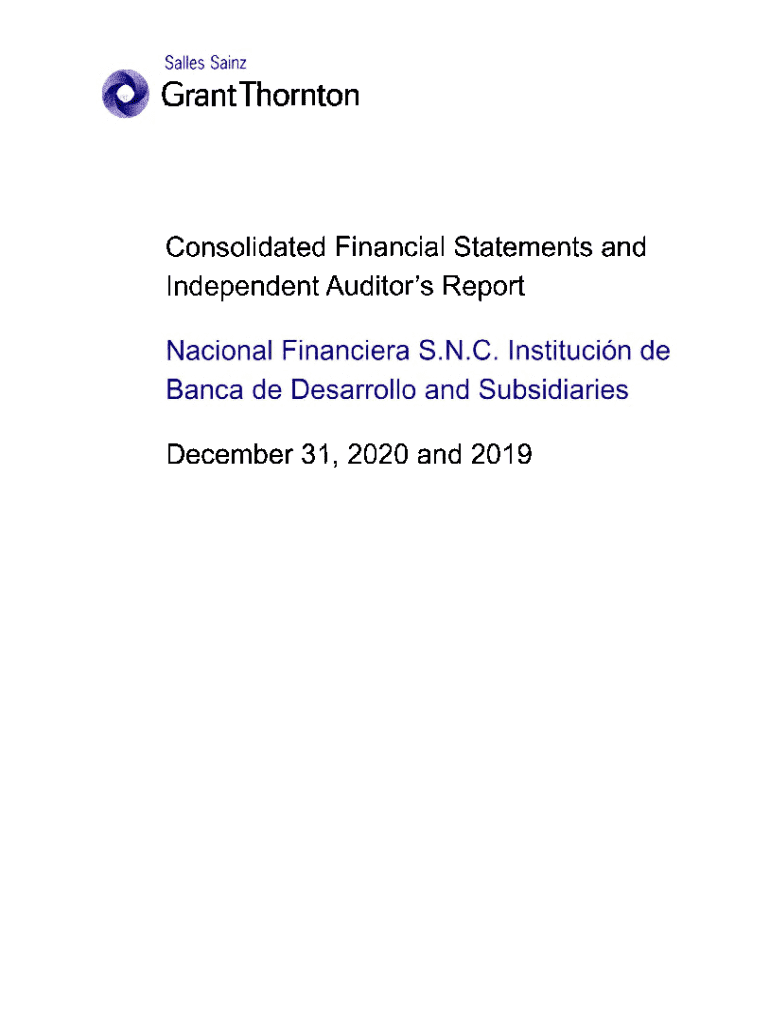 Sales SainzGrant ThdrntonConsolidated Financial! Statements and independent Auditor\'s Report National Financier S.N.C. Institution de Banca de Desarrollo and Subsidiaries December 31, 2020, and 2019Content