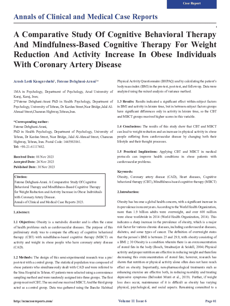 Get the free A Comparative Study Of Cognitive Behavioral Therapy And ...