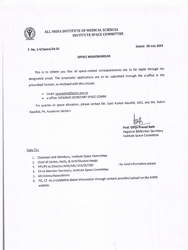 ALL INDIA INSTITUTE OF MEDICAL SCIENCES An sari Nagar, New Delhi 110029, India Institute Space Committee Application Form for Space Requirement 1. Name of the Department/ Center___2. Name & Designation