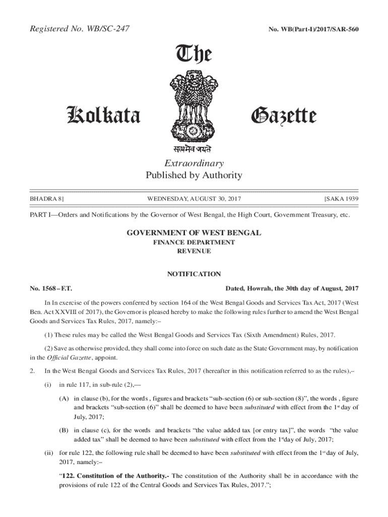 Registered KOLKATA GAZETTE, EXTRAORDINARY, AUGUST 30,
