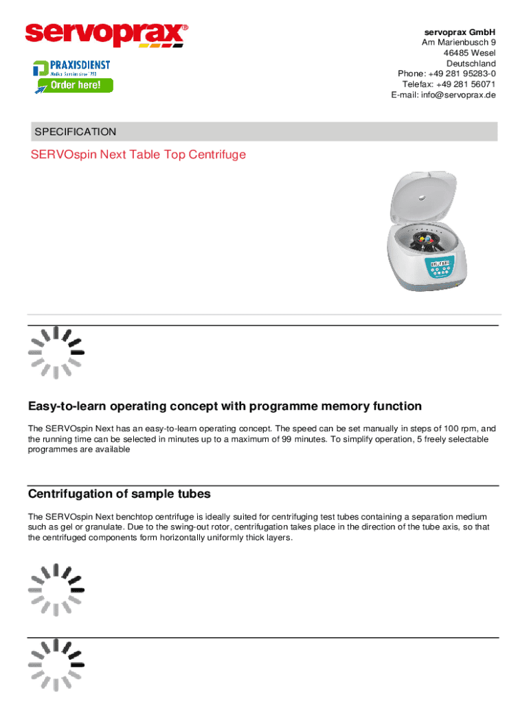 Email: info@servoprax.deSPECIFICATIONSERVOspin Next Table Top CentrifugeEasytolearn operating