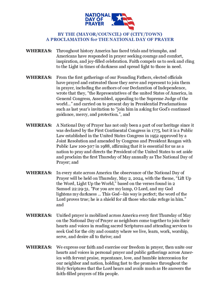 Get the free A PROCLAMATION for THE NATIONAL DAY OF PRAYER