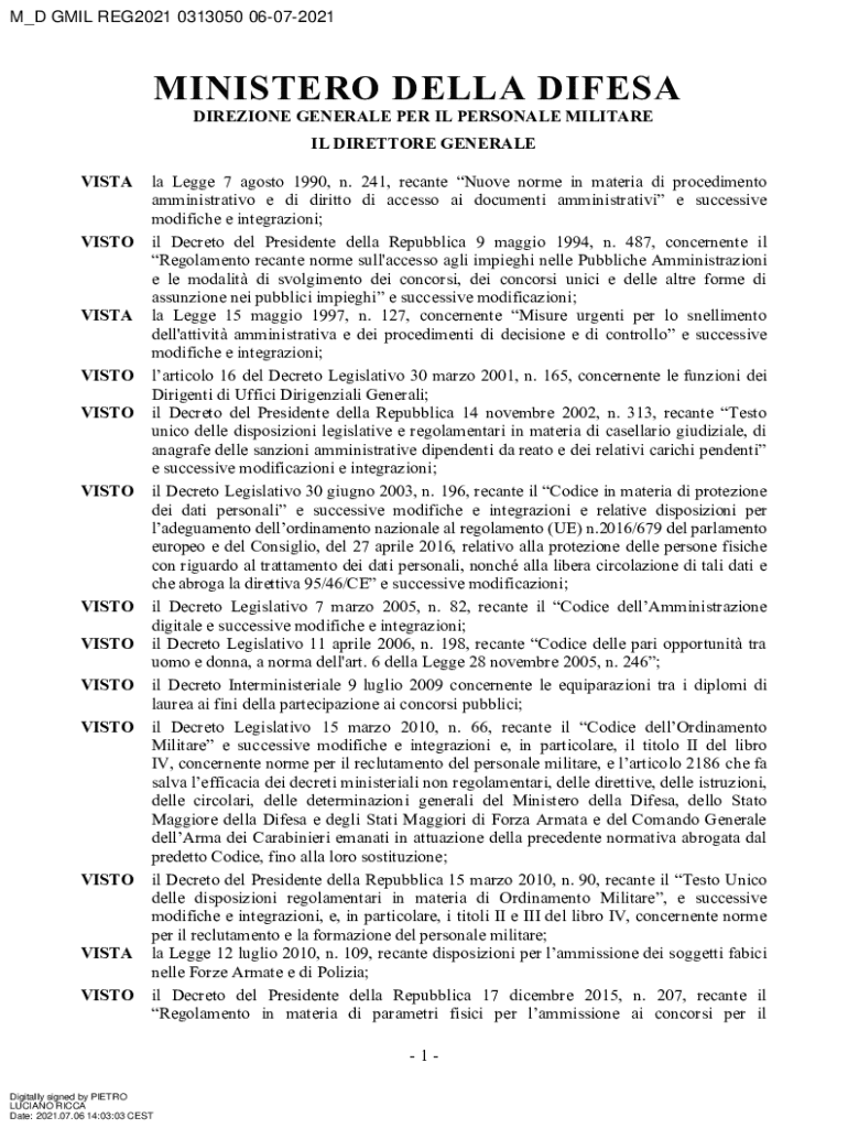 M_D GMIL REG2021 0313050 06072021MINISTERO DELLA DIF ESA