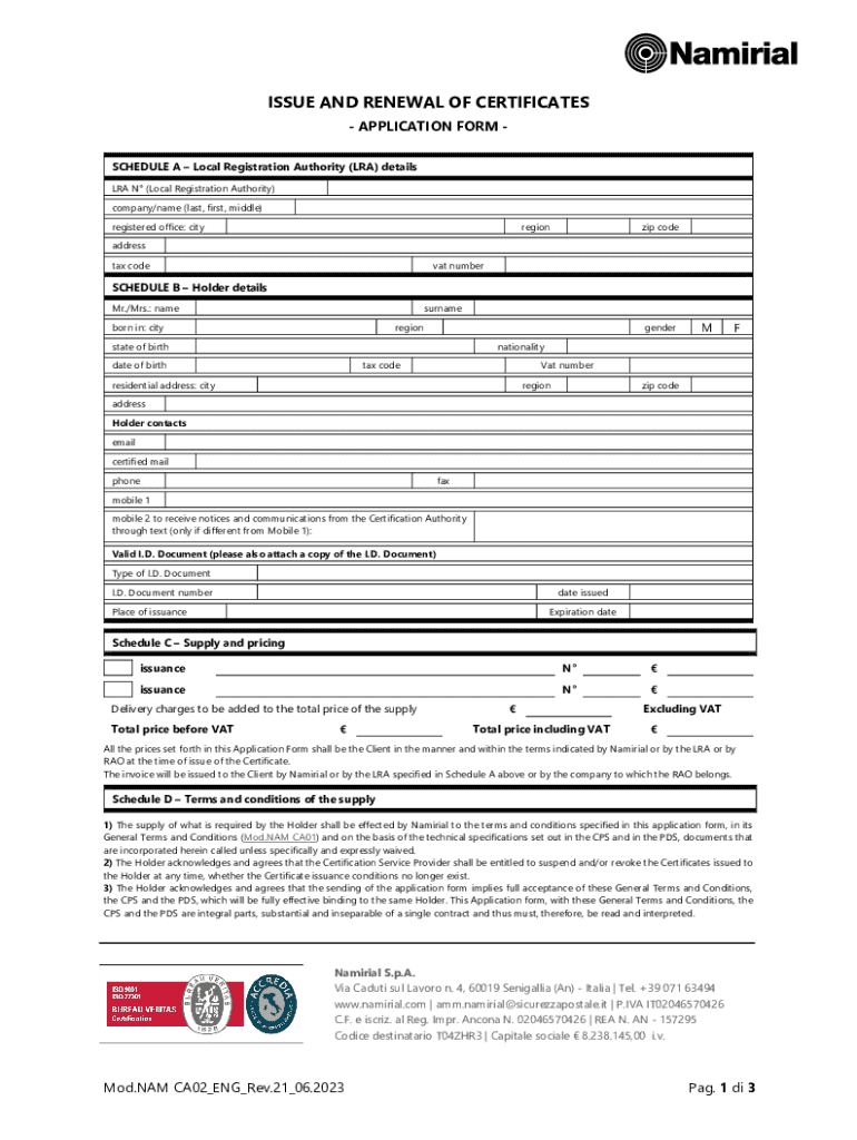 Get the free APPLICATION FORM - Mod.NAM CA02ENGRev.2106.