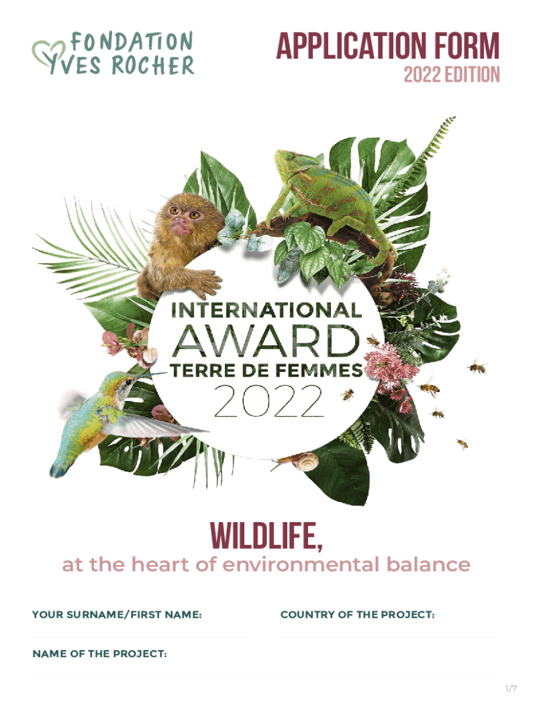 APPLICATION FORM2022 EDITIONWILDLIFE, at the heart of environmental balance YOUR SURNAME/FIRST NAME:COUNTRY OF THE PROJECT:.....................................................................................................................................................................................................................................................................................NAME