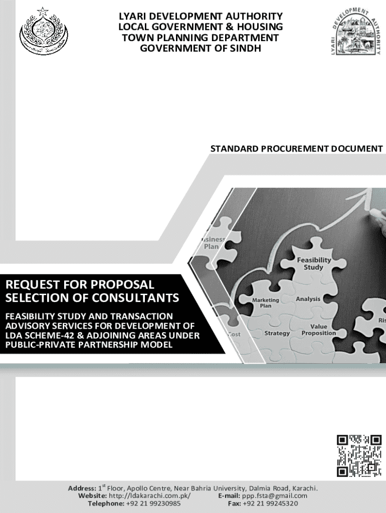 Polar DEVELOPMENT AUTHORITY LOCAL GOVERNMENT & HOUSING TOWN PLANNING DEPARTMENT GOVERNMENT OF SINDHSTANDARD PROCUREMENT DOCUMENTREQUEST FOR PROPOSAL SELECTION OF CONSULTANTS FEASIBILITY STUDY AND