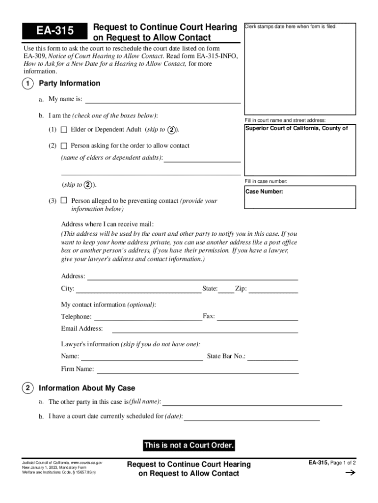 Get the free EA-315 Request to Continue Court Hearing. Judicial Council forms