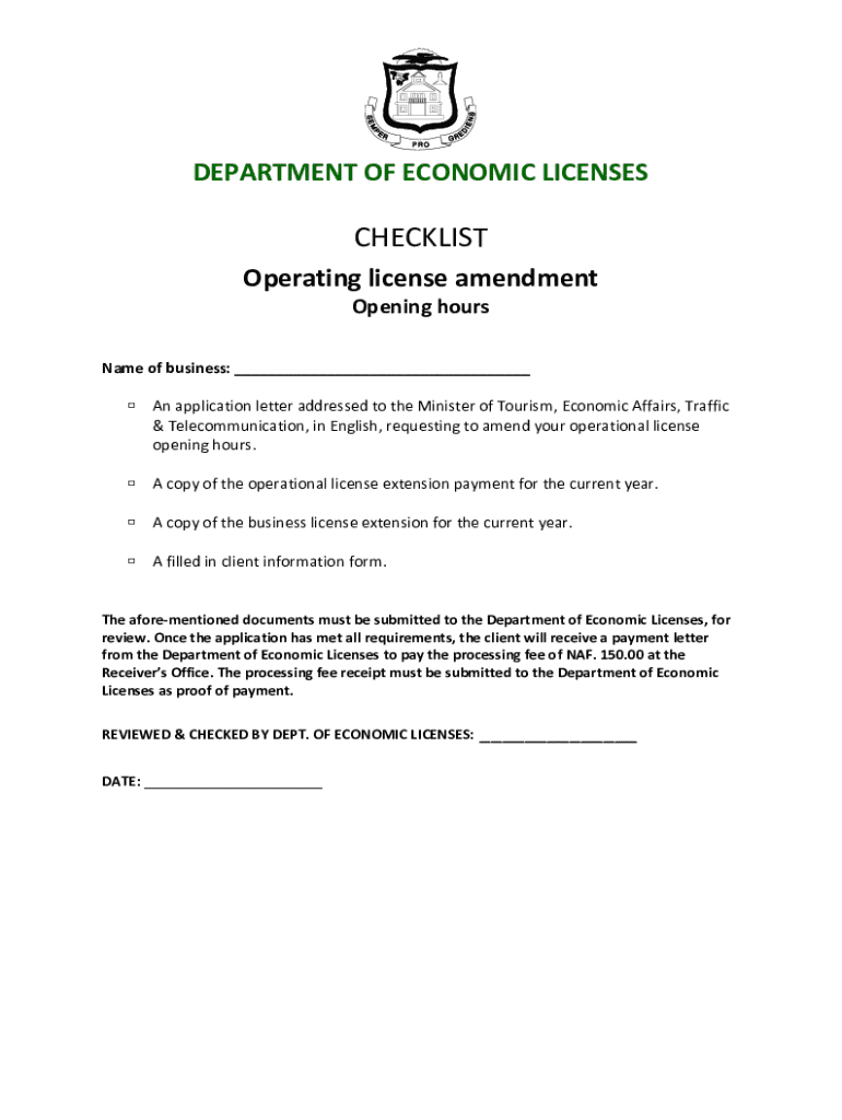 Successful submission of an operating license amendment form requires careful preparation of the necessary documentation. The following items are generally required: