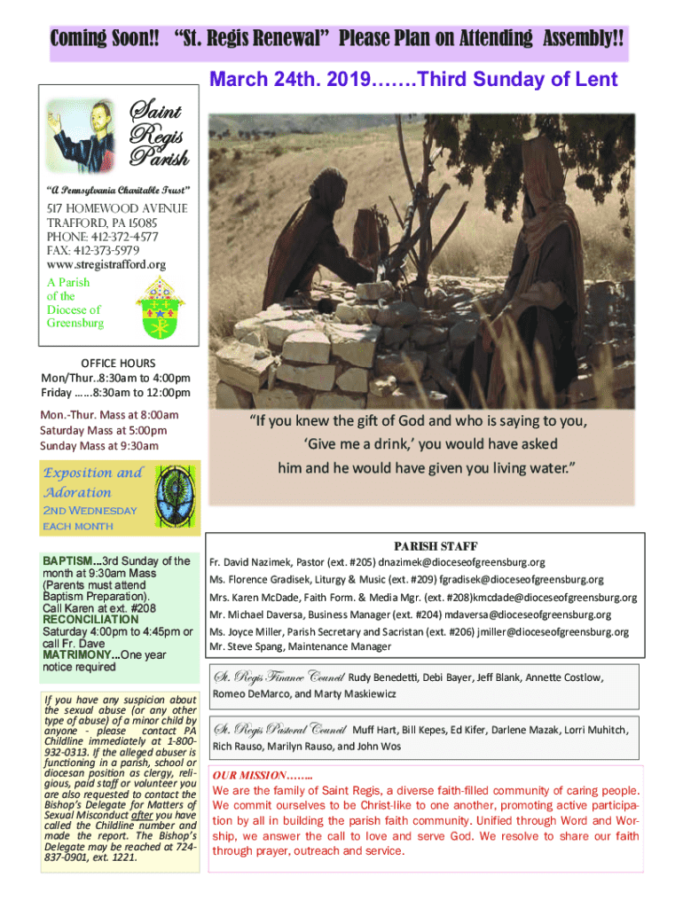 ct|March 24th. 2019. Third Sunday of Lent GGA Pennsylvania Charitable Trust517 Homewood Avenue