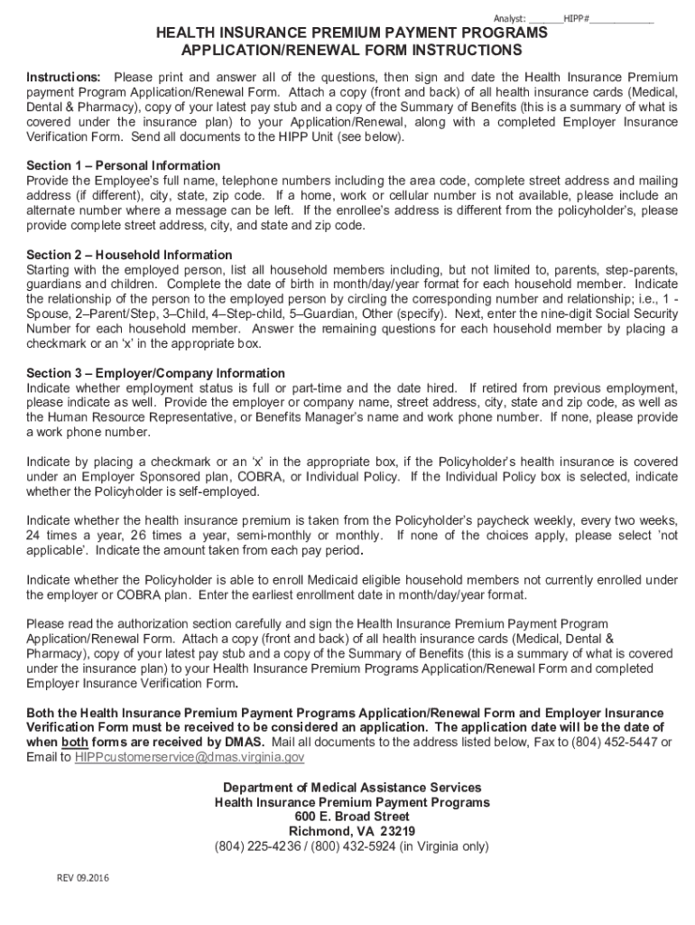 Get the free DMAS - HIPP/HIPP For Kids Instructions Page - Application and EIV