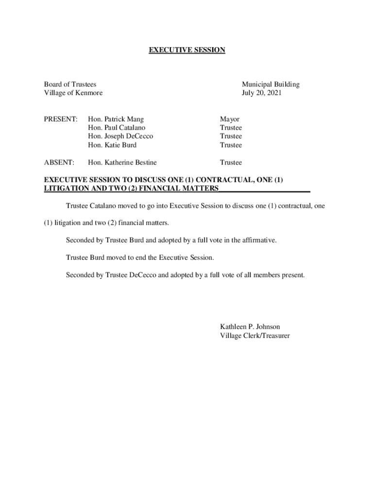 Get the free EXECUTIVE SESSION TO DISCUSS ONE (1) CONTRACTUAL, ONE (1)