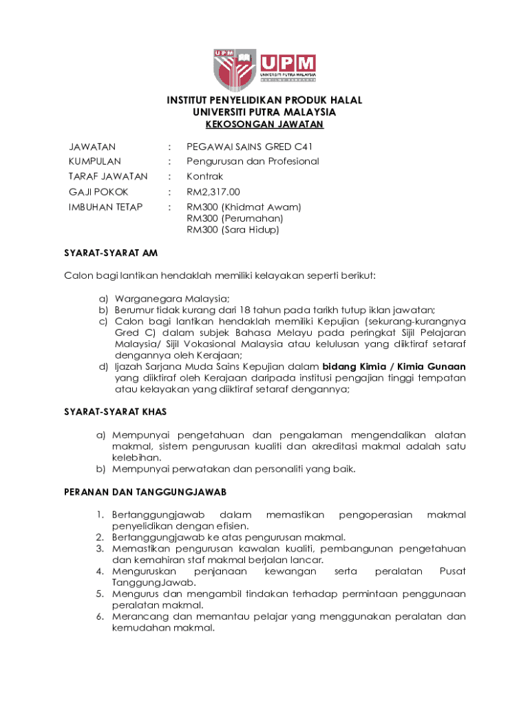 KEKOSONGAN JAWATAN:PEGASUS GAINS GRED C41KUMPULAN:Pengurusan Dan ProfesionalTARAF JAPAN:KontrakGAJI PO KOK:RM2,317.00IMBUHAN TEAM:RM300
