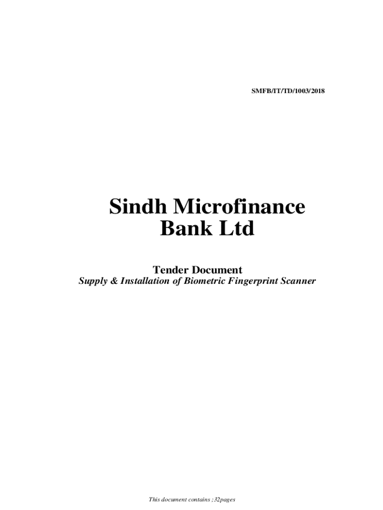 Supply & Installation of Biometric Fingerprint Scanners document contains ;32pagesSindh Microfinance Bank Attender Document Supply &