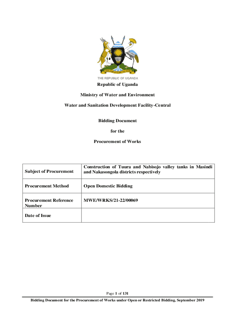 Republic of Uganda Ministry of Water and Environment Water and Sanitation Development FacilityCentralBidding Document for the Procurement of WorksSubject of ProcurementConstruction of Tuura and Nabisojo