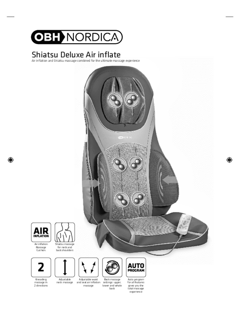 Shiatsu Deluxe Air inflated inflation and Shiatsu massage combined for the ultimate massage experience inflation Massage CushionShiatsu massage for neck and back shouldersKneading massage in 2 directionsAdjustable
