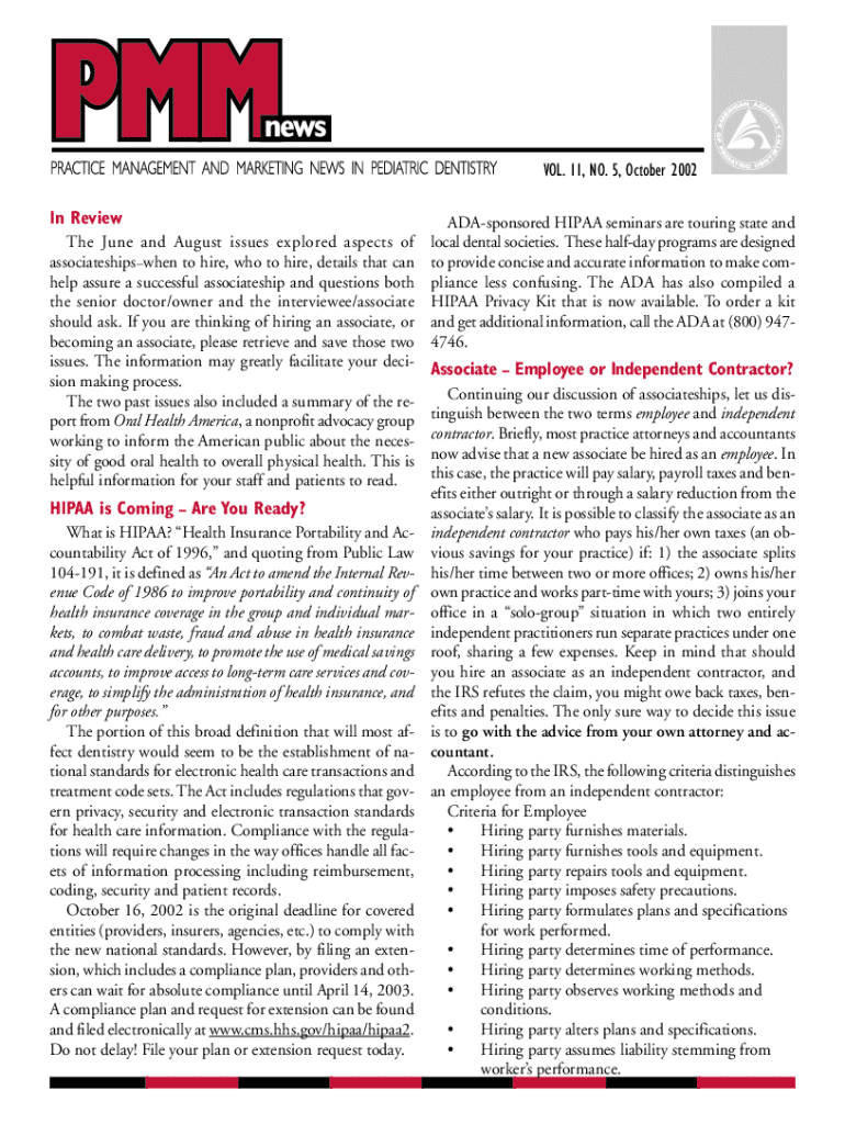 Get the free VOL. 11, NO. 5, October 2002 In Review HIPAA is Coming
