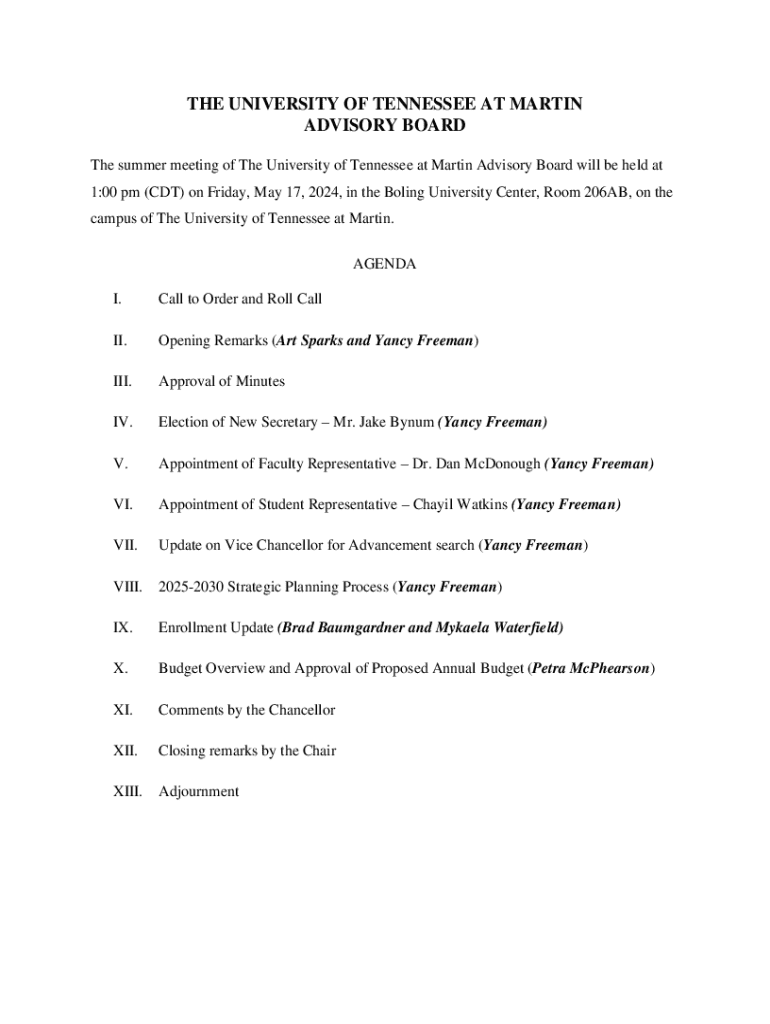 Get the free UTM Advisory Board To Discuss Blue Oval City At Friday ...