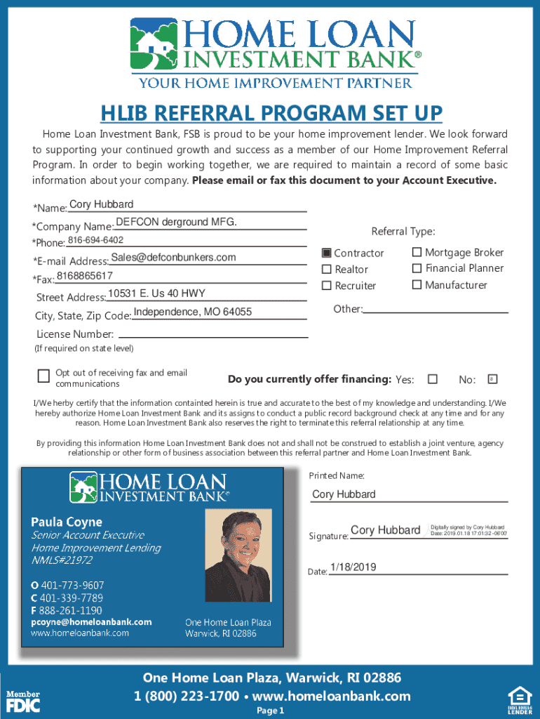 Referral Partners Loan Information Package We offer: FHA Title 1 HomeImprovement Loan HLIB Advantage LoanSell more jobs by joining our HOME IMPROVEMENT REFERRAL PROGRAM!One Home Loan Plaza, Warwick, RI 02886 1 (800) 2231700 www.homeloanbank.comTABLE OF CONTENTS PageDescription1HLIB Referral Program Set Up2HLIB Product Types3HLIB Product Details 4The FHA Title 1 Loan5The HLIB Advantage LoanOne Home Loan Plaza, Warwick, RI 02886 1 (800) 2231700 www