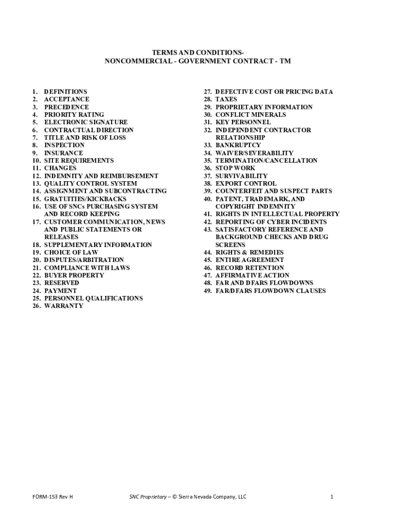 TERMS AND CONDITIONSNONCOMMERCIAL GOVERNMENT CONTRACT TM1. 2. 3. 4. 5. 6. 7. 8. 9. 10. 11. 12. 13. 14. 15. 16. 17. 18. 19. 20. 21. 22. 23. 24. 25. 26.DEFINITIONS ACCEPTANCE PRECEDENCE PRIORITY RATING