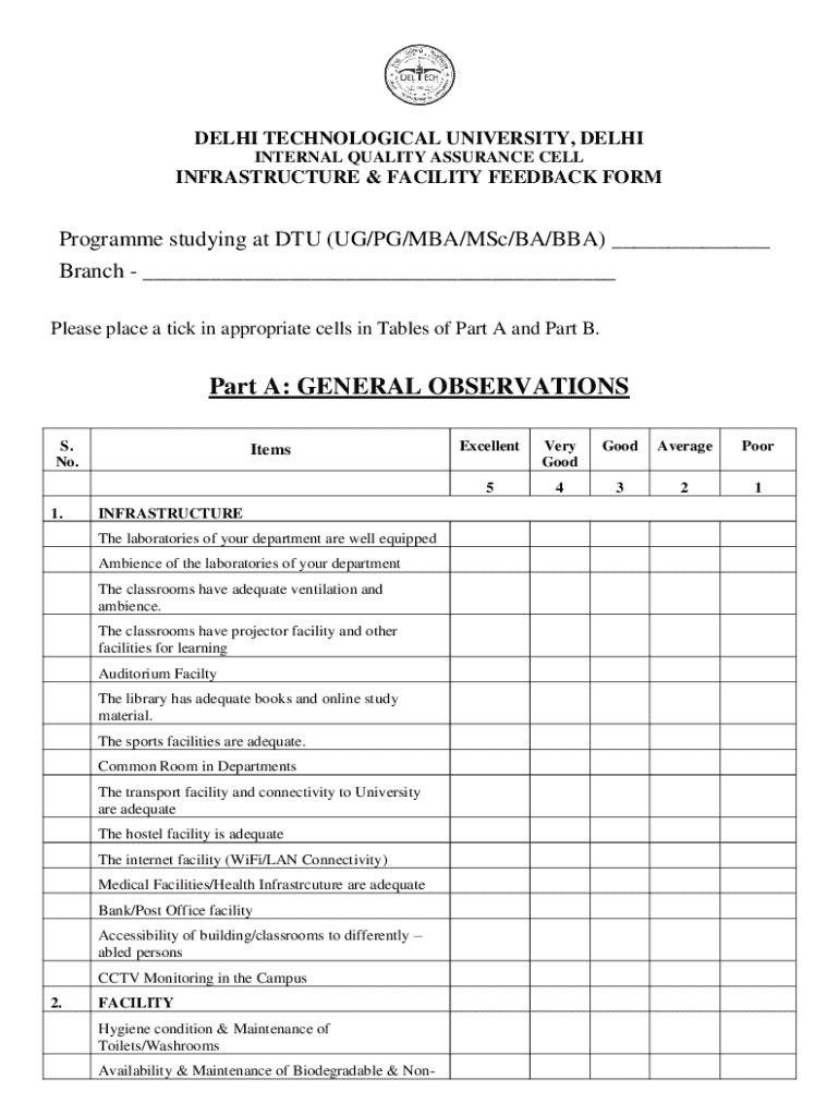Get the free Infrastructure & Facility Feedback Form - Delhi