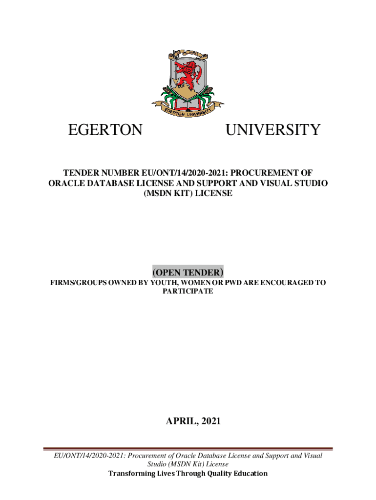 Get the free TENDER NUMBER EU/ONT/14/2020-2021: PROCUREMENT OF