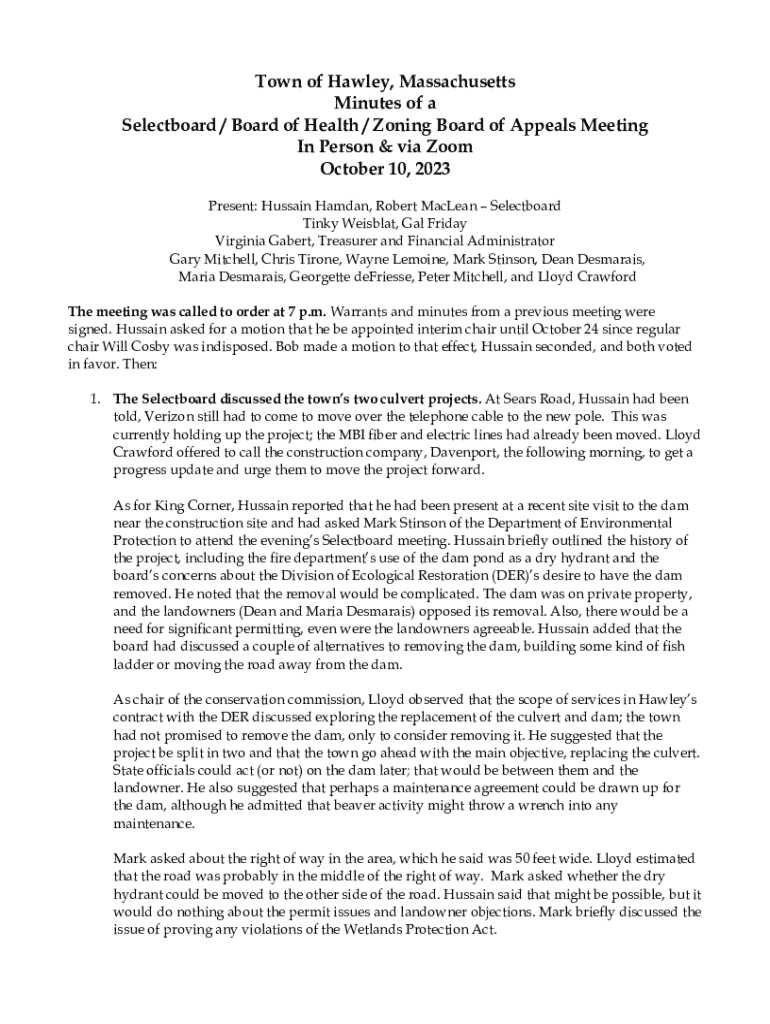 Get the free Present: Hussain Hamdan, Robert MacLean Selectboard