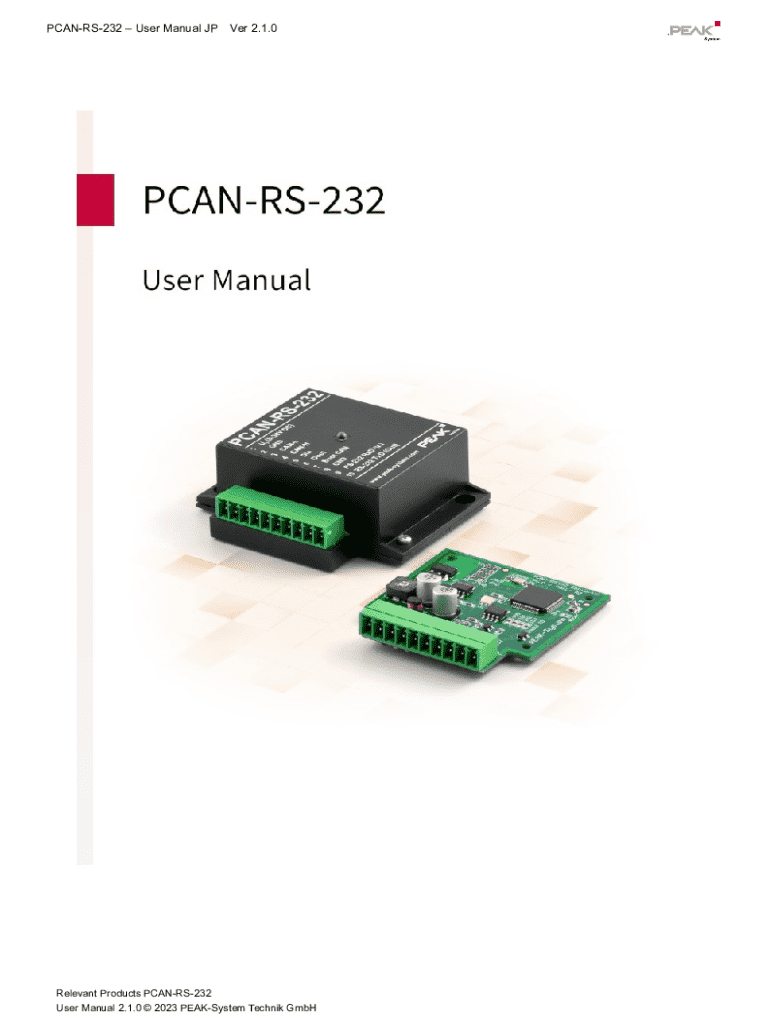 PCANRS232 User Manual Over 2.1.0Relevant Products PCANRS232
