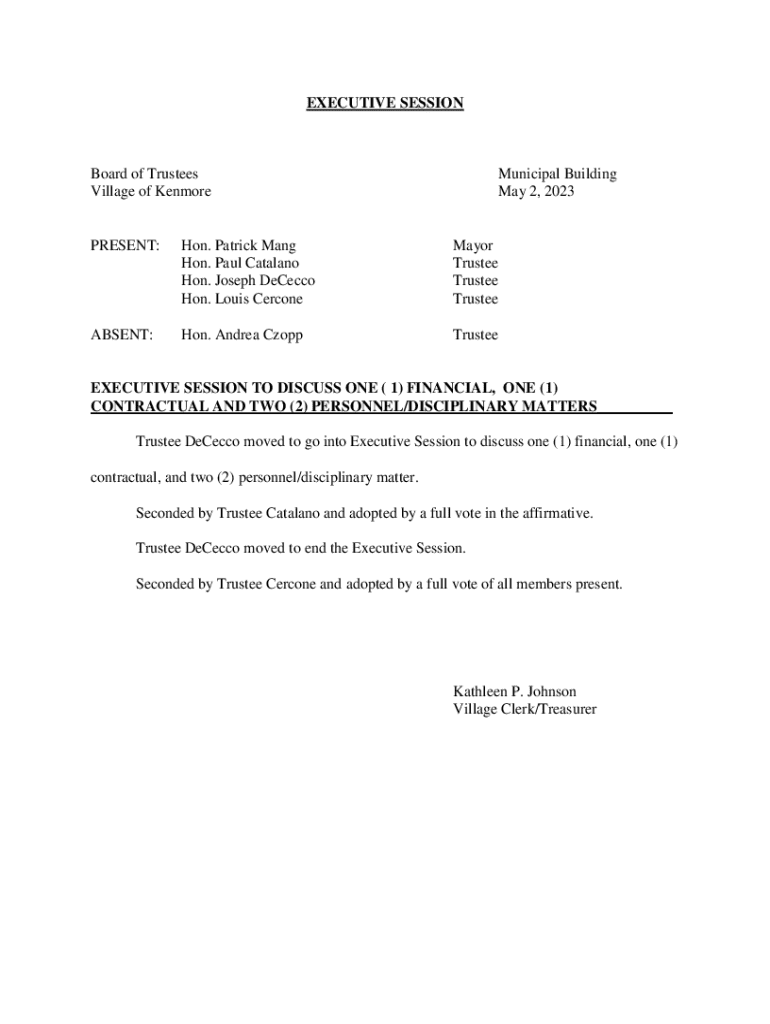 Get the free EXECUTIVE SESSION TO DISCUSS ONE ( 1) FINANCIAL, ONE (1)