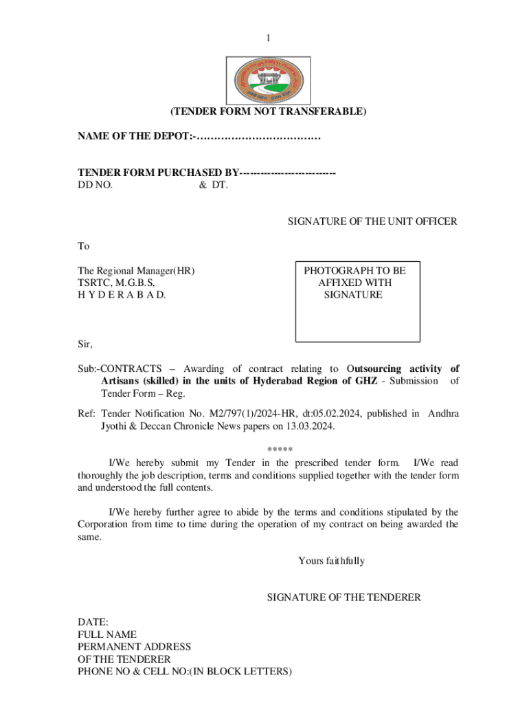 Get the free RM/HR Office & its Divisional Units TENDER FORM ...
