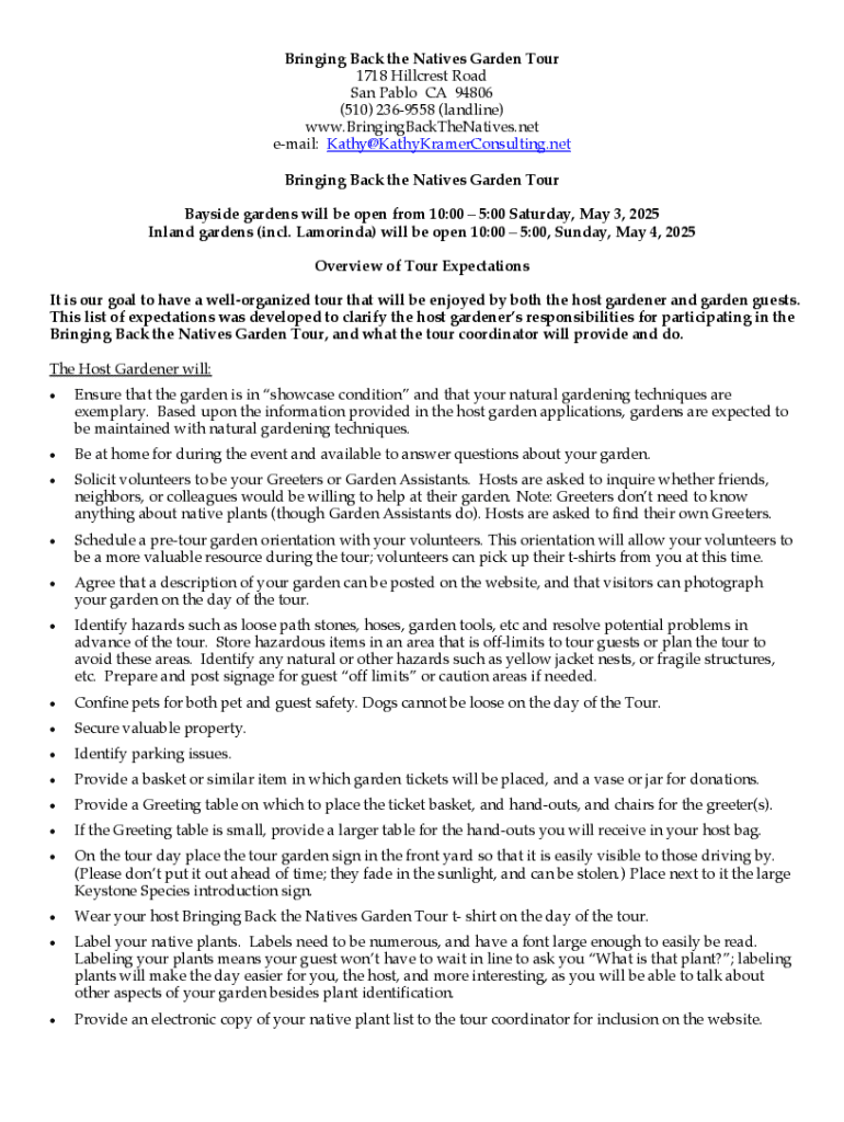 Get the free Bringing Back the Natives Garden Tour: Home