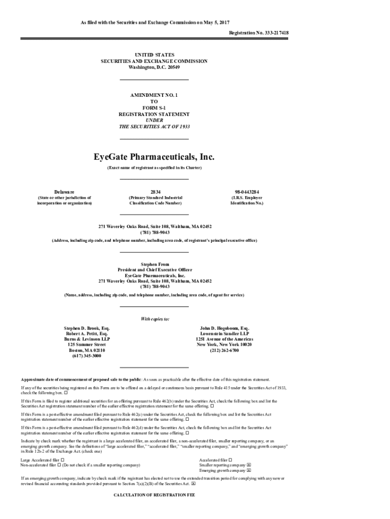 As filed with the Securities and Exchange Commission on May 5, 2017 Registration No. 333217418UNITED STATES SECURITIES AND EXCHANGE COMMISSION Washington, D.C. 20549AMENDMENT NO. 1 TO FORM S1 REGISTRATION