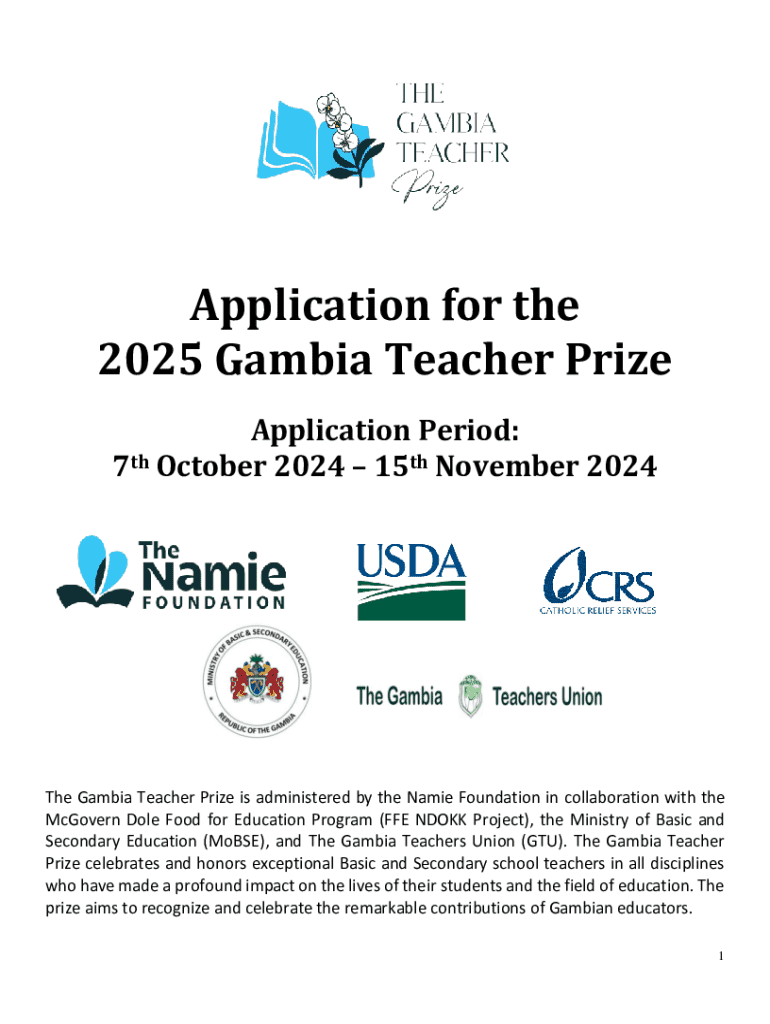 Get the free Application for the 2025 Gambia Teacher Prize