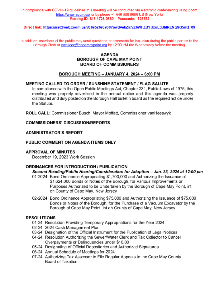 In compliance with COVID-19 guidelines this meeting will be conducted via electronic conferencing using Zoom https://www.zoom.us/ or by phone +1 646 558 8656 US (New York) Meeting ID: 818 4728 9889