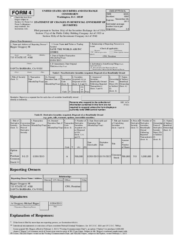 UNITED STATES SECURITIES AND EXCHANGE COMMISSION Washington, D.C. 20549FORM 4OMB APPROVAL 32350287 Check this box if no November 30, longer subject to Expires: 2011 Section 16. Form 4 or STATEMENT