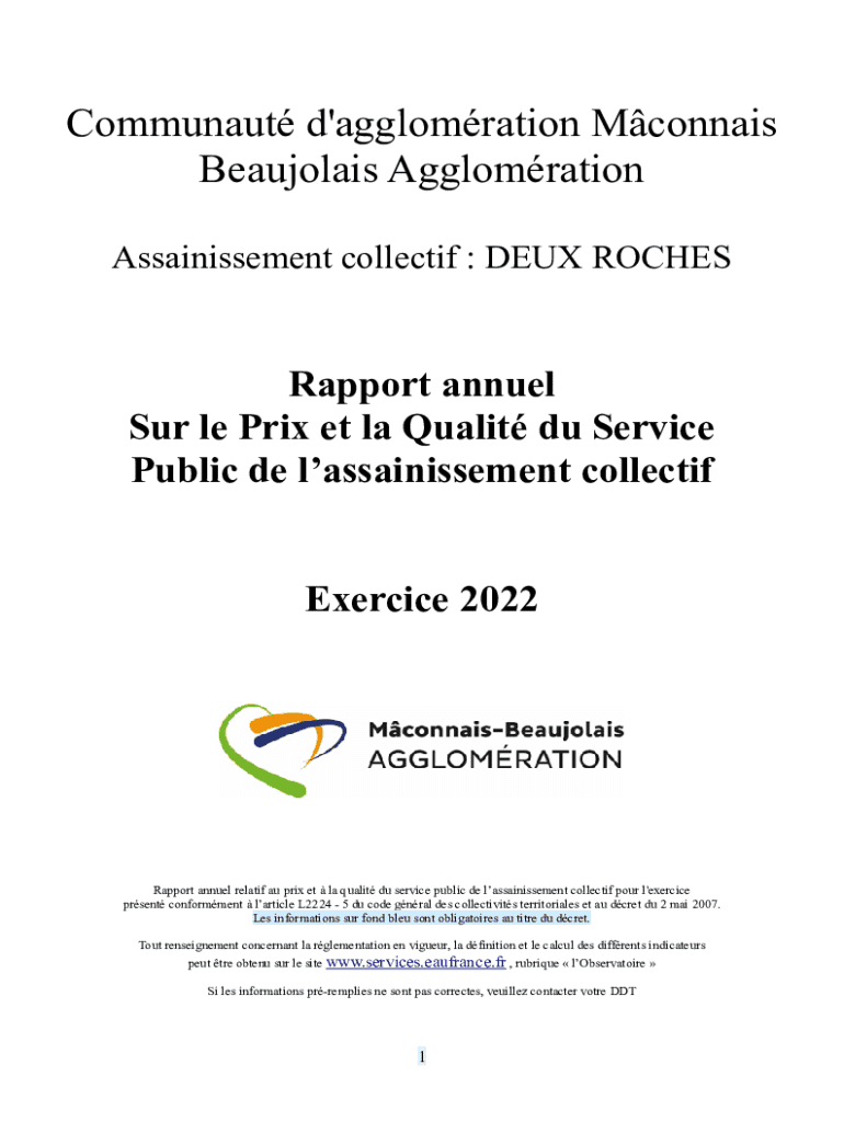 Communaut d\'agglomration Mconnais Beaujolais Agglomration Assainissement collectif : DEUX ROCHESRapport annuel Sur le Prix et la Qualit du Service Public de lassainissement collectif Exercice 2022Rapport