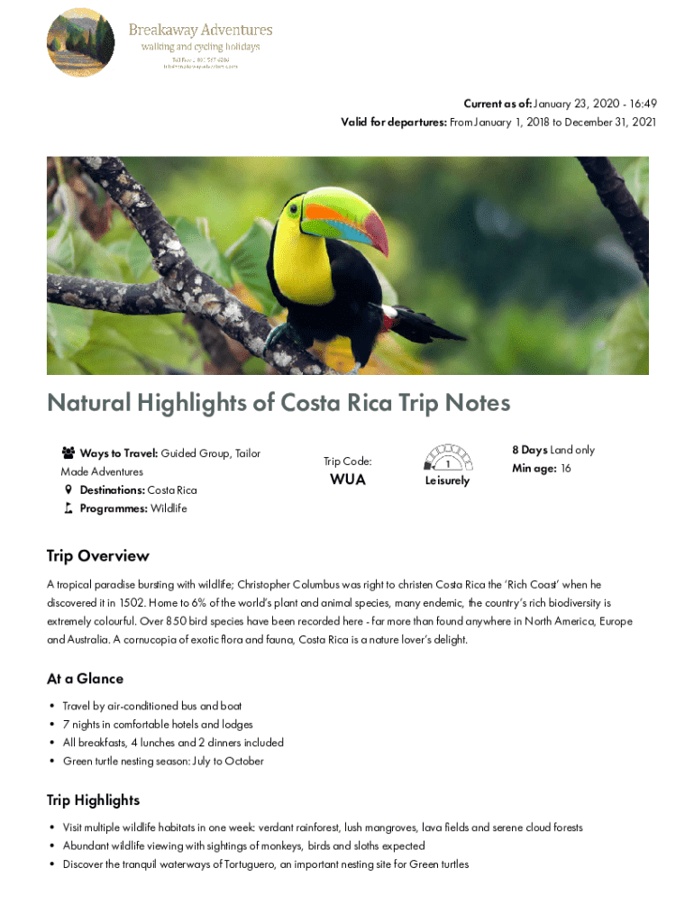 Get the free Natural Highlights of Costa Rica - Exodus Travels