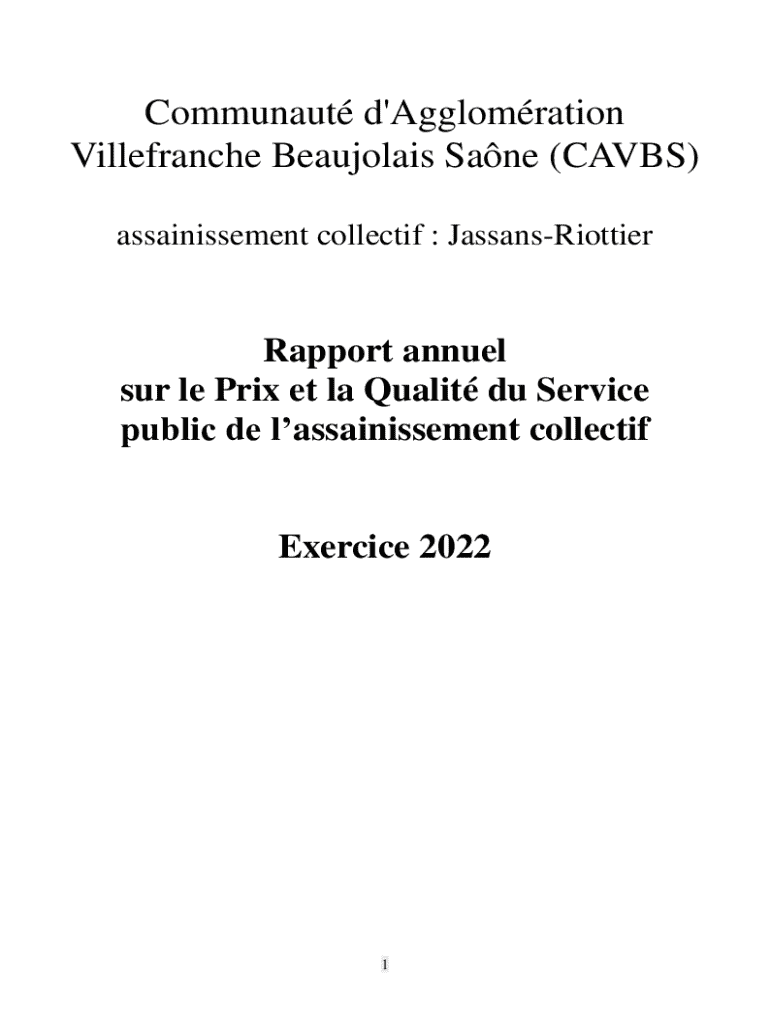 Communaut d\'Agglomration Villefranche Beaujolais Sane (CAVBS) assainissement collectif : JassansRiottierRapport annuel sur le Prix et la Qualit du Service public de lassainissement collectifExercice