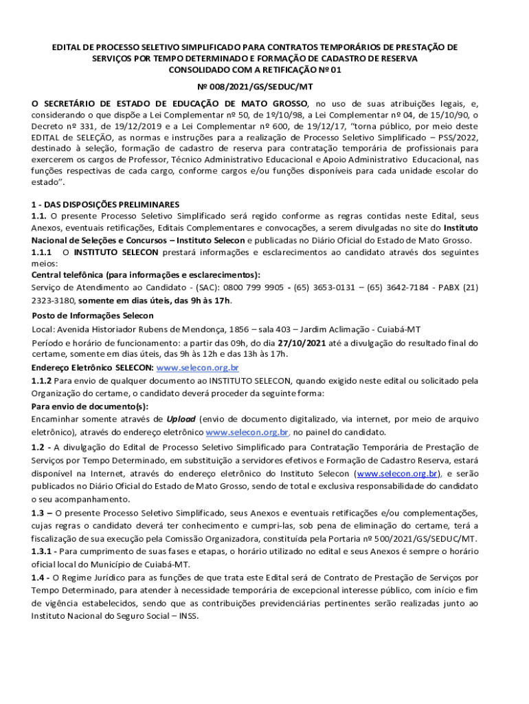SERVOS POR TEMPO DETERMINED E FORMAT DE CASTRO DE RESERVE