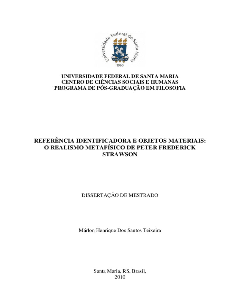 UNIVERSIDADE FEDERAL DE SANTA MARIA CENTRO DE CINCIAS SOCIAIS E HUMANAS PROGRAMA DE PSGRADUAO EM FILOSOFIAREFERNCIA IDENTIFICADORA E OBJETOS MATERIAIS: O REALISMO METAFSICO DE PETER FREDERICK STRAWSONDISSERTAO
