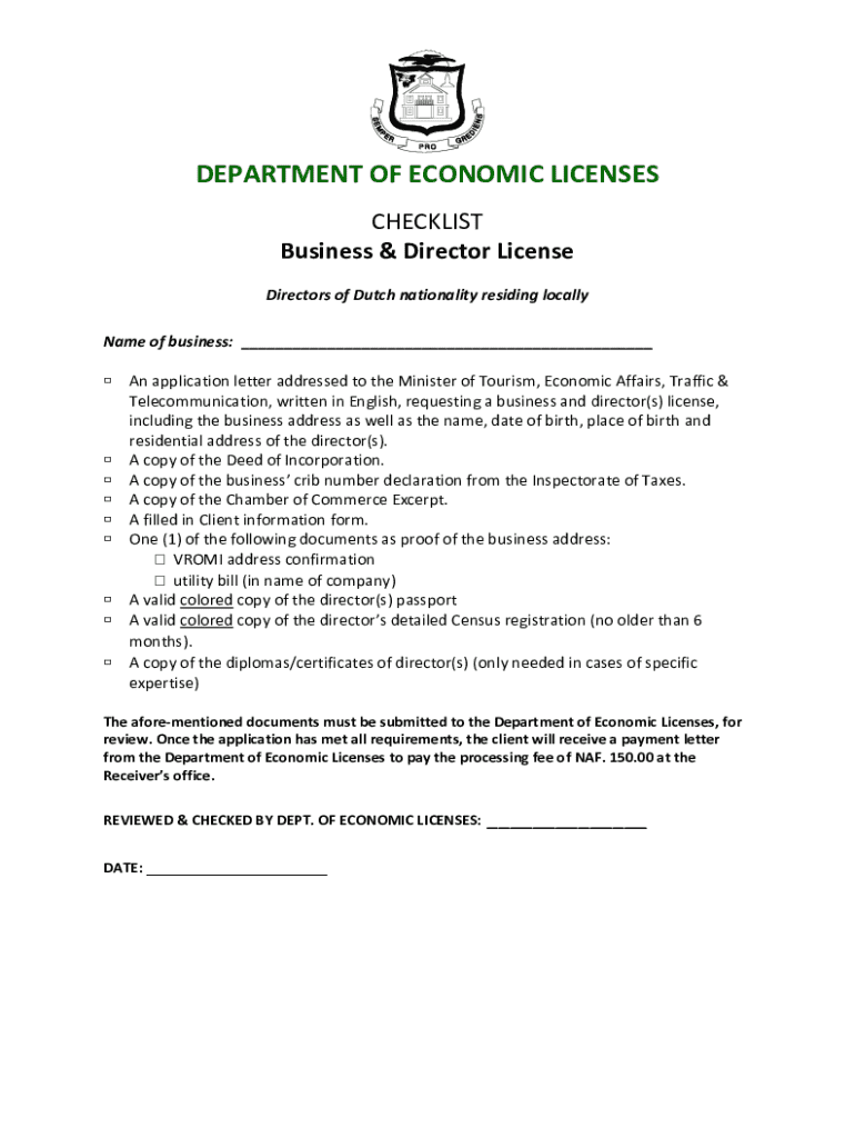 Get the free Business & Director License - Directors of Dutch Nationality ...